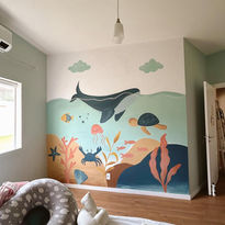 Pintar para uma criança é a parte mais mágica do meu trabalho! Cada pequeno tem um mundo interior cheio de cores, sonhos e emoções, e transformá-lo em arte na parede é oferecer serenidade, segurança e muito amor.